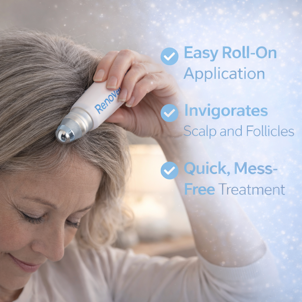 A simple roll-on routine designed to reduce shedding, support regrowth, and help your hair look fuller over time—without complicated treatments.