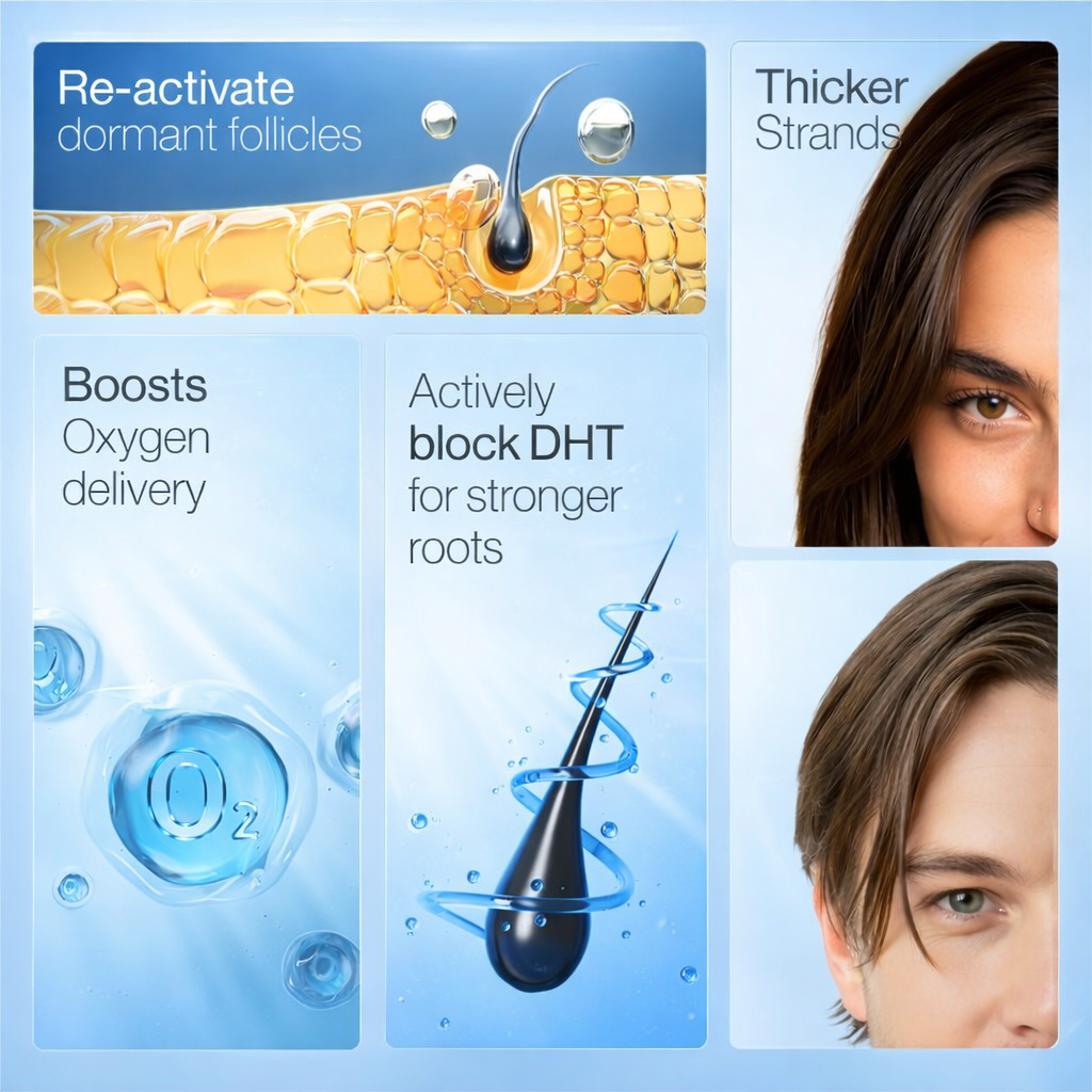 Designed for people noticing widening parts, receding areas, or gradual thinning—helping support the scalp where hair loss often begins.