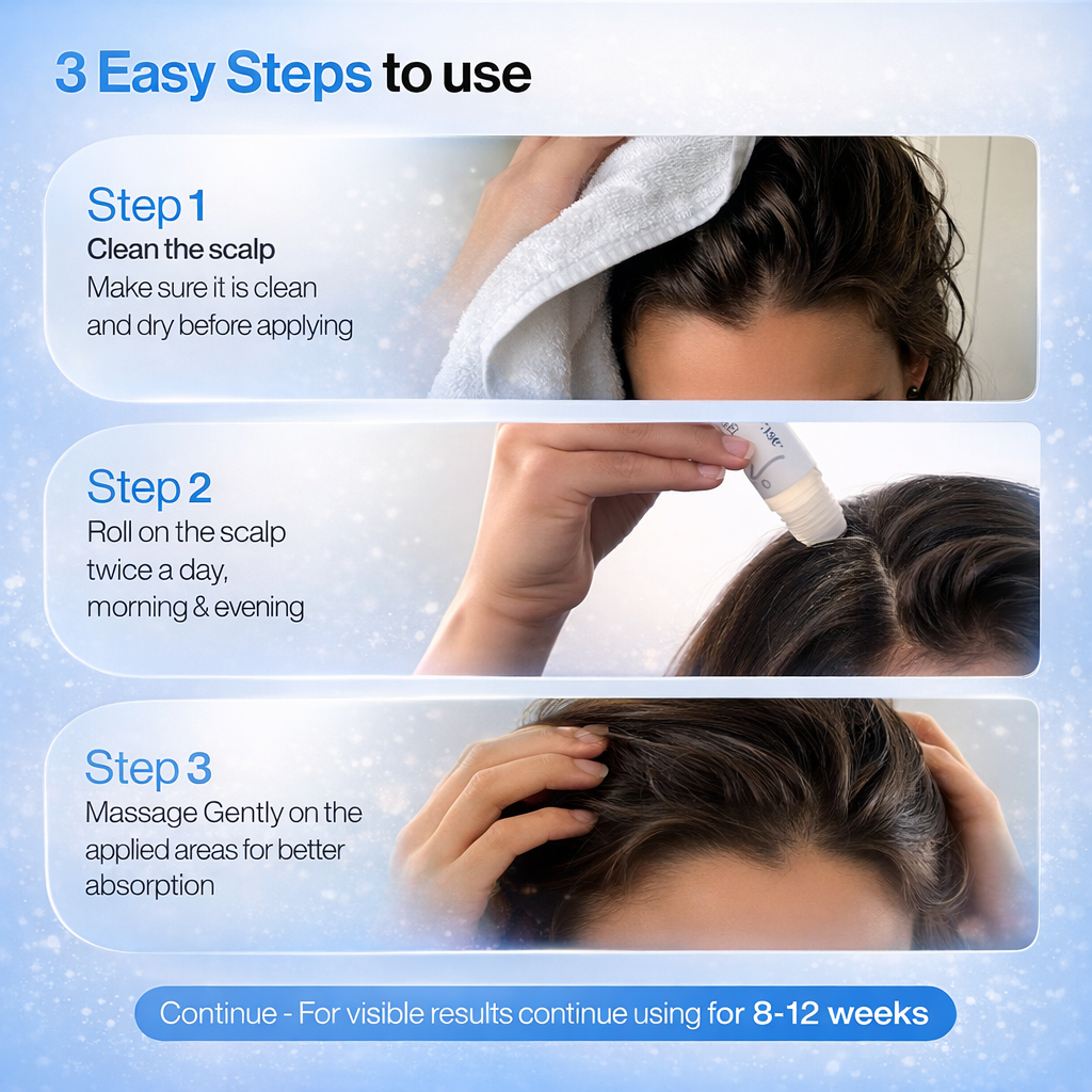 For optimal results, apply morning and evening to a clean, dry scalp.